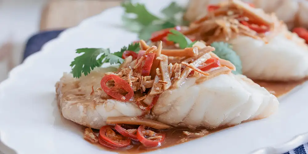Gedämpfter Fisch mit Ingwer-Sojasauce und Chili