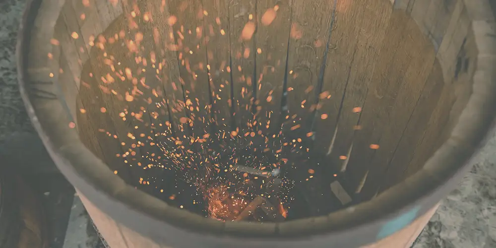 Eine grosse Rolle spielt das «Toasten», der Fasseinbrand, bei dem die Dauben über Eichenholzfeuer 25 bis 30 Minuten in ihre Form gebogen werden. Eine leichte Toasting-Stufe verleiht dem ausgebauten Wein weiche Vanille-Noten, eine mittlere erzeugt Karamell-/Toastbrot-Noten und starkes Toasting Kaffee-, Tabak- oder rauchige Noten. Tatsächlich schmeckt der Weinkenner einen feinen Unterschied zwischen Weinen, die in französischen und solchen, die in amerikanischen Eichenfässern gelagert wurden. Letztere beschreibt er als kräftiger als die etwas milderen barriqueausgebauten edlen Tropfen.