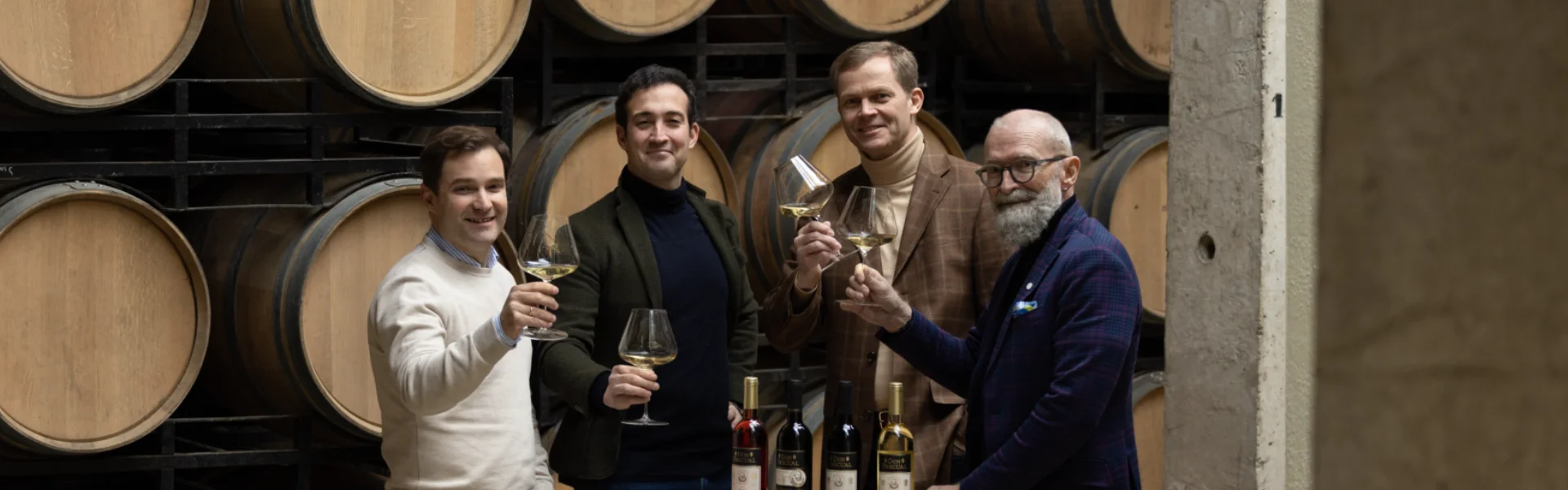 Kellermeister Javier Garbayo, Verkaufsleiter Pablo Echavarri Abascal, Markus Naewie und Robert Heinzer verkosten die Don Pascual Linie.