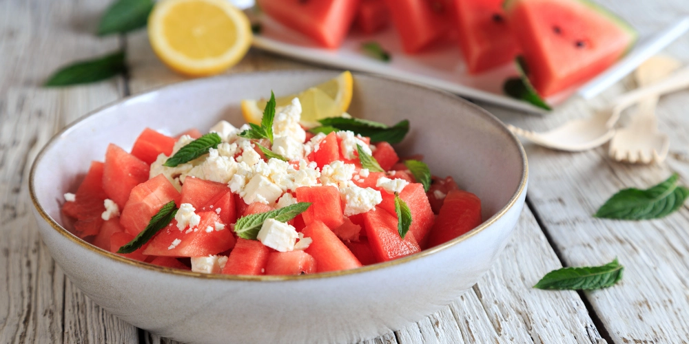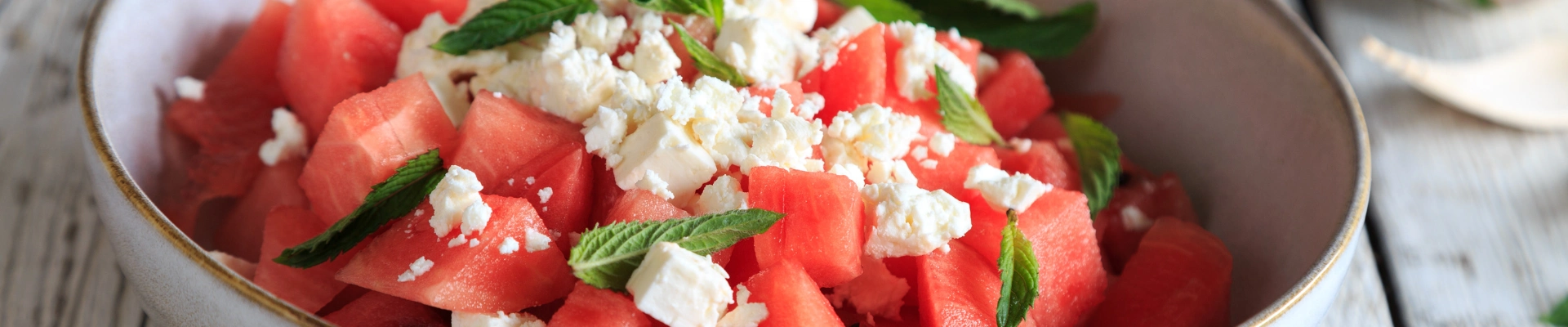 | ½ Wassermelone, gewürfelt | 150 g Feta, gewürfelt oder zerbröselt |
